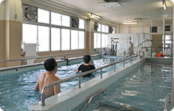 温泉を利用した運動浴を行うためのプールがございます。医師の指示があった場合、リハビリの一環として、プールでの運動療法を行います。温泉プールを使っての歩行練習は特に手術後のリハビリテーションに効果を発揮しています。