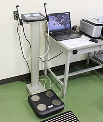 体組成計とは、体重をはじめ体内の筋肉量・脂肪量を測定し、体型判定を行うものです。肥満の程度や基礎代謝量も測定でき、また体幹部・両手・両脚を5つのパーツに分けてそれぞれの筋肉量・脂肪量を標準値と比較して数値で示すことができます。
