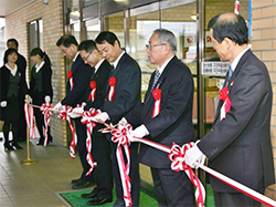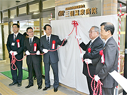 式典には岡山大学大学院 医歯薬学総合研究科長 谷本光音科長、鳥取県中部医師会 松田隆会長、三朝町 吉田秀光町長、鳥取県福祉保健部健康医療局 藤井秀樹局長、三朝温泉病院 森尾泰夫院長ら20名の出席がありました。式典では協定書への調印、寄付講座看板の除幕、テープカットが行われ、調印では松田会長と谷本科長との間で固い握手が交わされました。