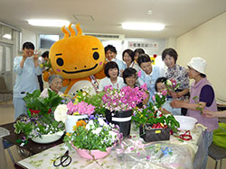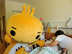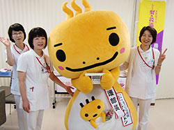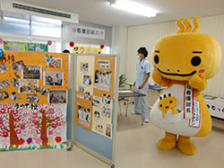 5月14日(火)、15日(水)に、看護フェアを行いました。今年の看護フェアのテーマは「ほっと一息しよ・・」。三朝町のゆるキャラ「ミササラドン」を一日看護部長に招き、患者さまはもちろん職員もミササラドンのかわいらしさに心和みほっとしました。一日看護部長の三朝ラドンと共に近隣のみささこども園への訪問、健康相談、リハビリ相談、フラワーアレンジメント教室など盛りだくさんの企画で看護の日をPRしました。