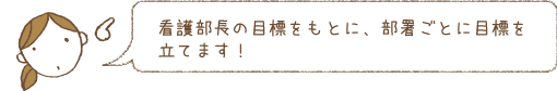 看護部の目標を軸に、部署ごとにも目標を立てます。それにより「今、必要とされていること」を考え実行しています。