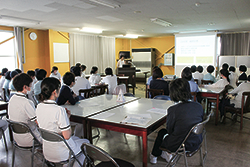 看護部では、毎年4月に「目標説明会」を行っています。病院長の今年度の方針をもとに、その年の看護部が何を目指すのかを看護部職員に説明することにより認識を共有していきます。さらに、看護部目標をもとに、各師長が各部署の目標を説明します。他部署の師長の熱い思いや病棟の特色、目標を理解することは、看護部全体で取り組むことの意味を 知り、連帯感を持ち、より患者さんへいい看護、いい笑顔を届けるため、看護部職員が同じ目標に向かって活動することに繋がっていきます。